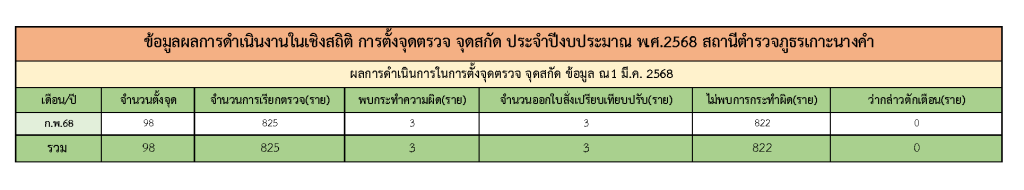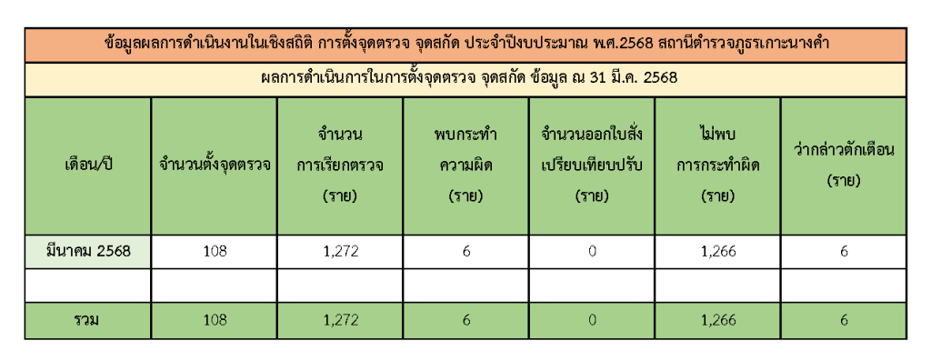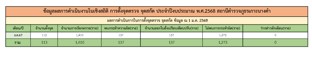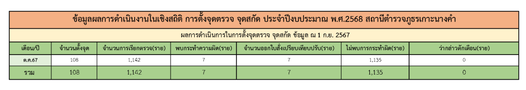 สถิติคดีการตั้งจุดตรวจ จุดสกัด