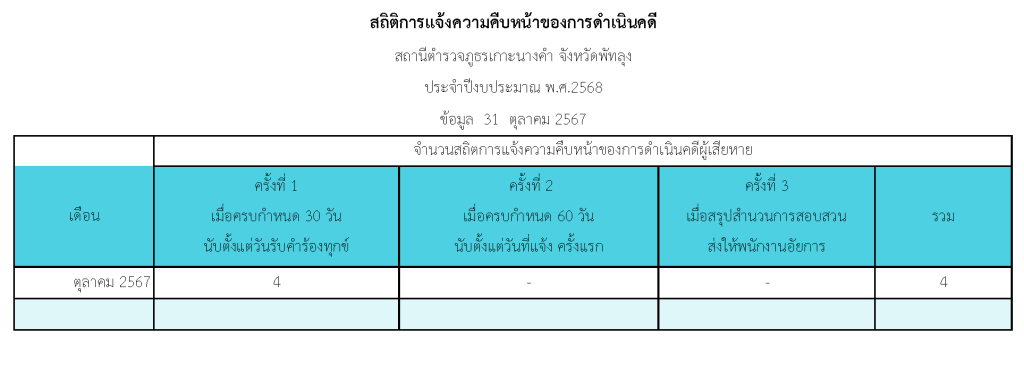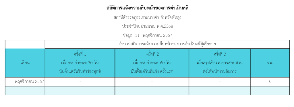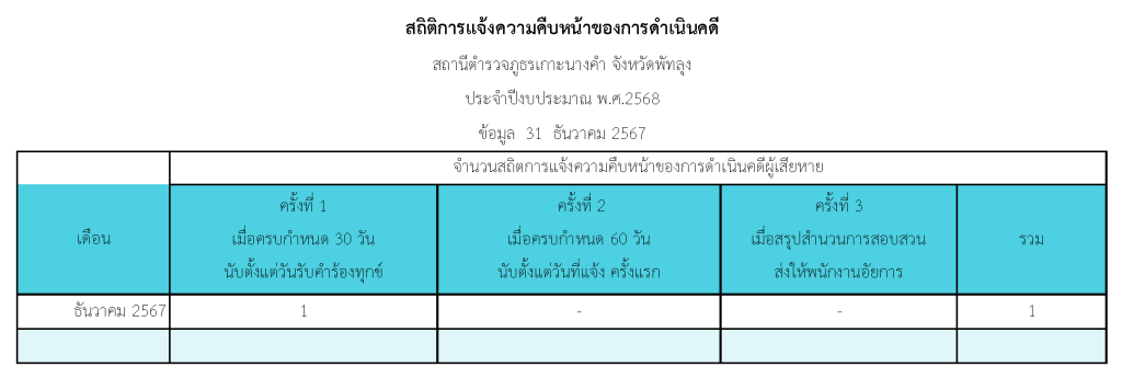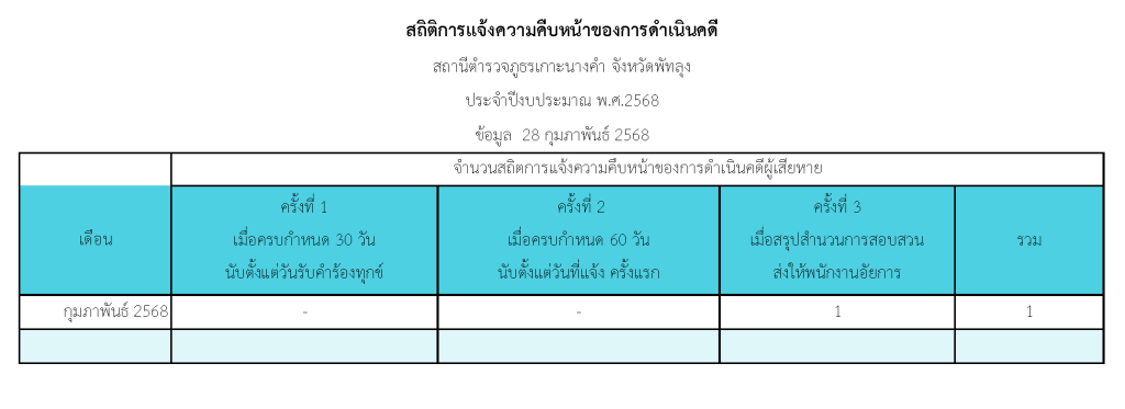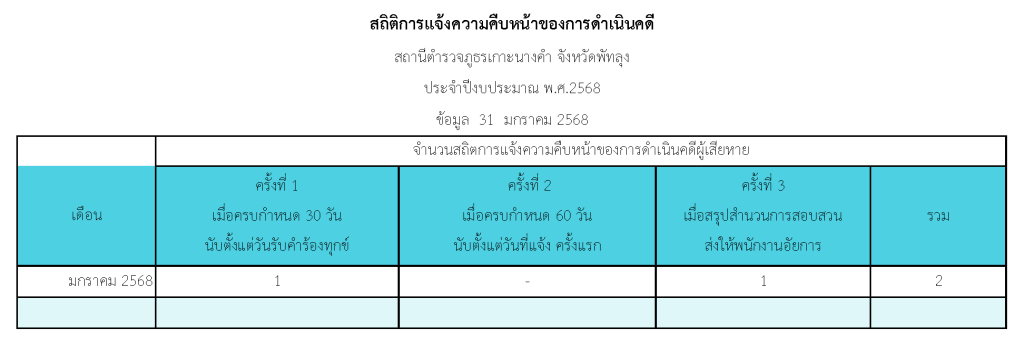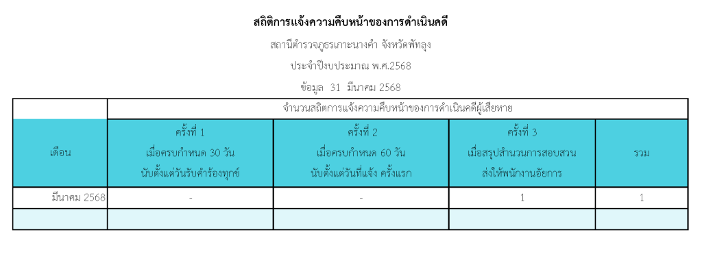 สถิติการแจ้งความคืบหน้าของการดำเนินคดีผู้เสียหาย